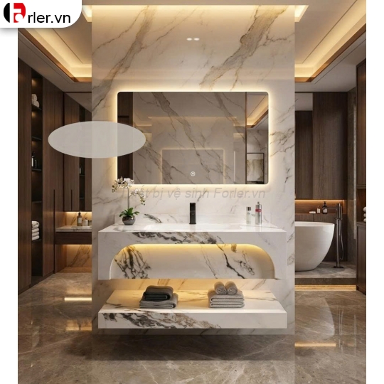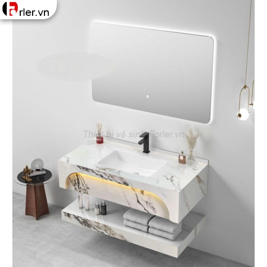 - Ngăn để đồ bên dưới được làm từ chất liệu đá nung kết (Sintered Stone) với khả năng chịu nước tuyệt đối, chống mối mọt, cong vênh.