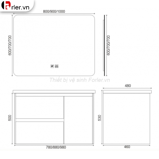 Bộ sản phẩm gồm chậu lavabo, tủ, gương. (Không kèm theo vòi chậu, xi phông hay ống xả).