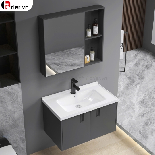 Bộ sản phẩm gồm chậu lavabo, tủ, tủ gương. (Không kèm theo vòi lavabo, xi phông hay ống xả).