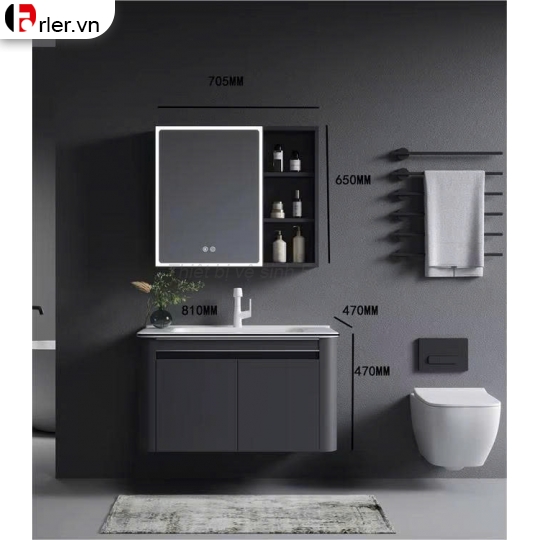 Bộ sản phẩm gồm chậu lavabo, tủ, tủ gương. (Không kèm theo vòi lavabo, xi phông hay ống xả).