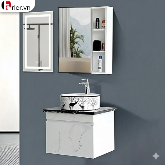 Bộ Tủ Nhựa Vân Đá Trắng & Tủ Gương Forler Còn hàng