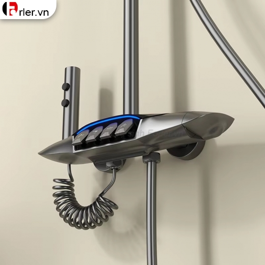 - Dải đèn LED đổi màu: Một số mẫu sen cây bàn phím ghi xám có dải led và màn hình hiển thị còn được trang bị đèn LED đổi màu theo nhiệt độ nước, tạo hiệu ứng ánh sáng độc đáo, biến phòng tắm thành một spa mini tại gia.