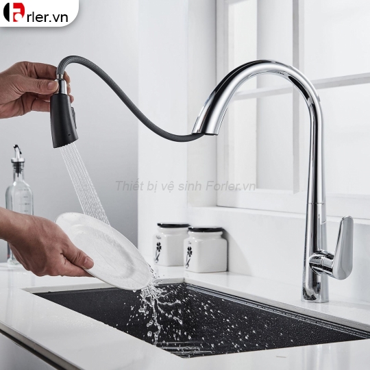 Vòi rửa được thiết kế dây rút tiện lợi, giúp bạn dễ dàng làm sạch mọi ngóc ngách của bồn rửa.
