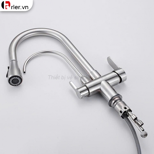 - Thiết kế đặc biệt vừa có thể sử dụng như những vòi rửa bát thông thường vừa có thể kéo dài như vòi sen cho công việc rửa chén bát, rau củ & lấy nước để đun nấu linh hoạt hơn.